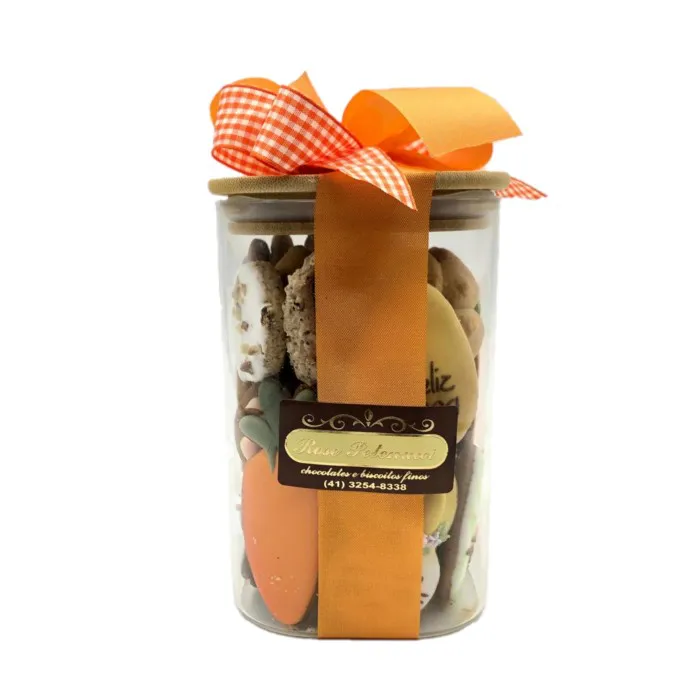 Vidro de bolachas mistas doce com tema de Páscoa.